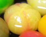 | オレンジに黄色の縞模様、底に出る星模様が可愛らしい キャンディ名の通りとても甘く風味の良いエアルームトマトです 3〜4cmの実が生ります 風味も良く、果実は黄色です 湯剥きすると、黄色の実にオレンジのラインが入り、まるで手毬麩のよう 私の経験上ですが、一房に付くのは4つほど 多収穫は望めないかもしれませんが、それ故に、採算が合わずに 栽培する農家の方も少ないと思われます とても美味しいのに市場には出回りにくい、食べたければ育てるしかない! サラダに入れても存在感のあるトマトです |